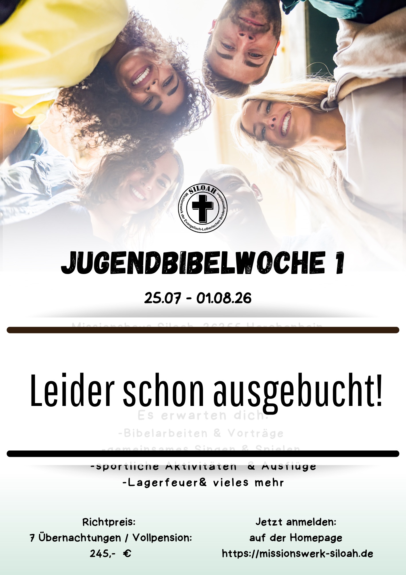 25.07.2026 - 01.08.2026 Jugendbibelwoche 1 – 2026 Missionshaus SILOAH Feldkrücker Weg 10, Grebenhain, Deutschland --- Ausgebucht ---